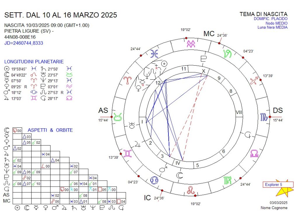 La Luna in Leone di lunedì mattina cammina velocemente formando bei Trigoni con Venere e Mercurio in Ariete, garantendo un buon inizio di settimana per i nati nel primo Decano dei Segni di Fuoco. Marte staziona intorno ai 19° del Segno del Cancro, lanciando Trigoni ai Pianeti in Pesci e ai nati in Scorpione, favoriti. Meno facili giovedì, venerdì e sabato a causa della Luna in Vergine opposta a Sole, Saturno, Nodo della Luna e Nettuno. Gli effetti di Marte sul Sole cancerino degli States si possono ripercuotere anche in Europa.